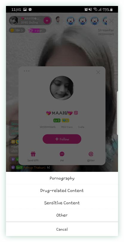 heartlive is committed to user safety and resources to facilitate the combat of problems as they arise. One example of such commitment is through our new “Admin” feature, which enables broadcasters (Talent) to allow other trusted users to be administrators for their broadcasts to block commenters on their behalf in real time. Admins can be easily added or removed by a broadcaster at any time, and we strongly recommend that those users who are added as Admins are people with whom the broadcaster is familiar and trusts.